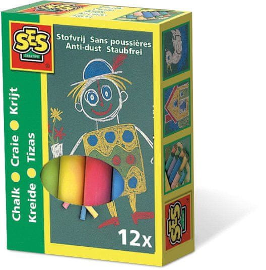 Set barvnih otroških kred v škatli. Krede ne puščajo madežev na rokah, se ne drobijo, ne praši in so primerne za alergične otroke. Paket vsebuje 12 kred. Mešanica barv. Mere paketa: 8,5 × 6 × 2 cm. Starost: 3+