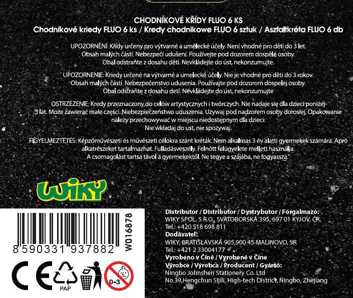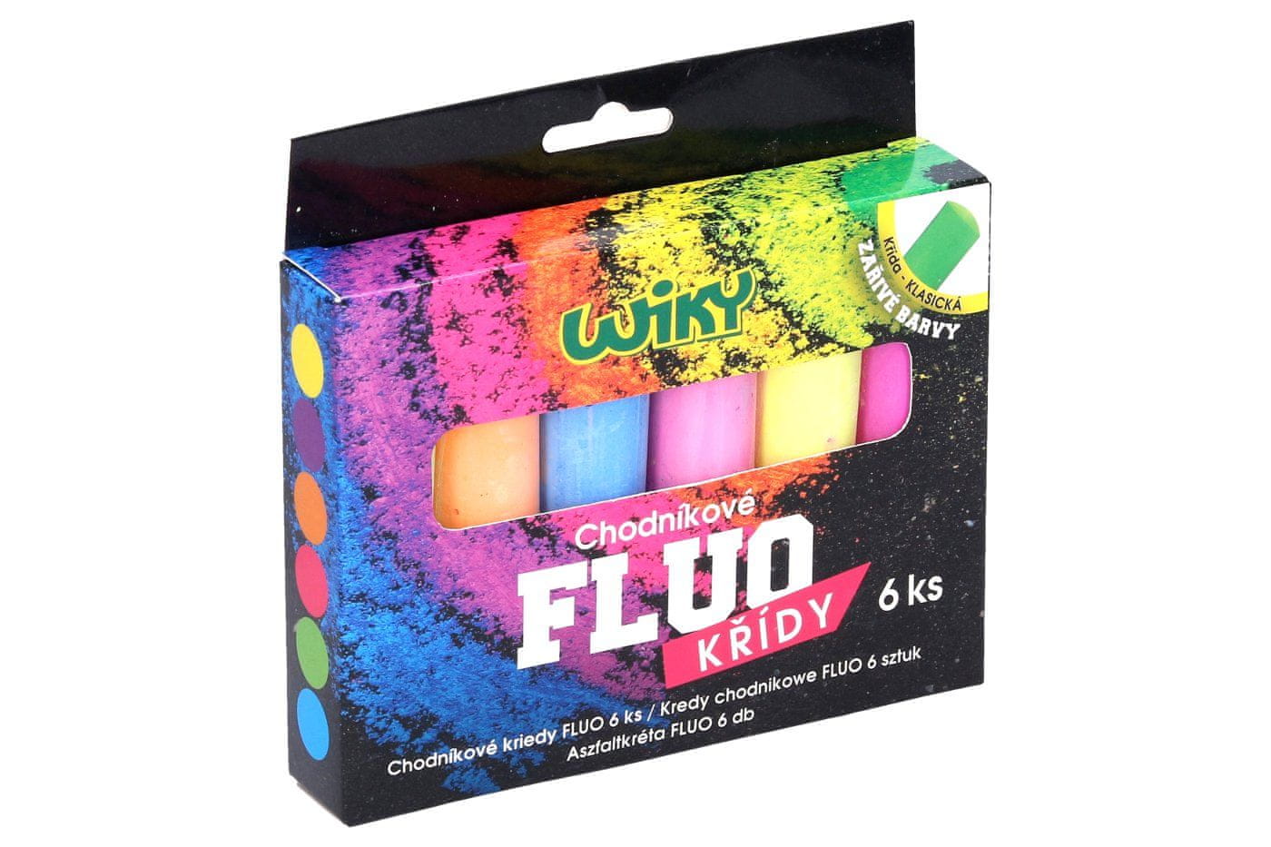 FLUO krede 6 kosov. Svetle barve – klasična konica. Barve: rumena, vijolična, oranžna, modra, zelena, rožnata.