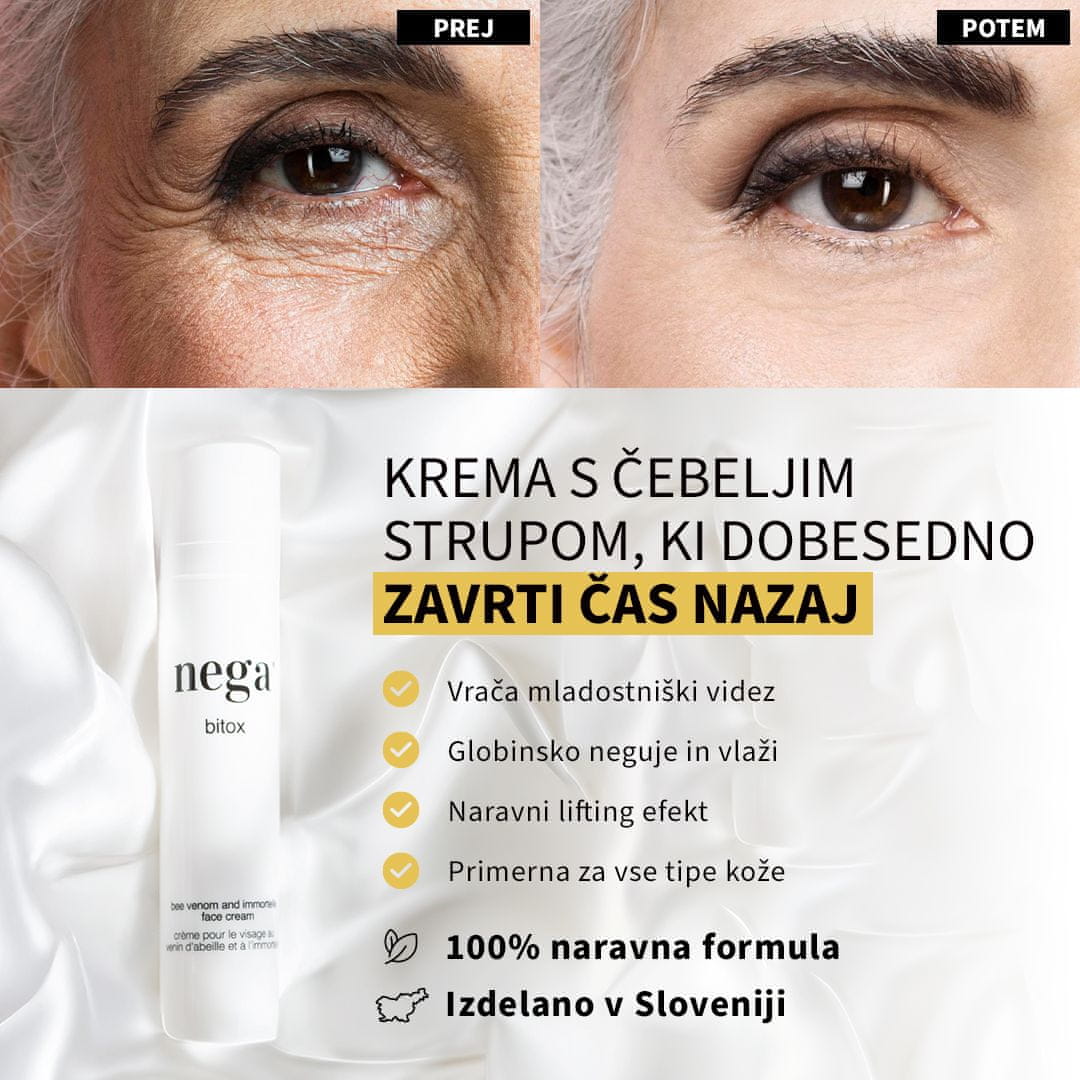 Nega Cosmetics 3x Krema za obraz s čebeljim strupom in smiljem, 3x50 ml, za sijočo in mladostno kožo, globinsko neguje in vlaži, naravne sestavine, za vse tipe kože, od 25 leta naprej, Bitox
