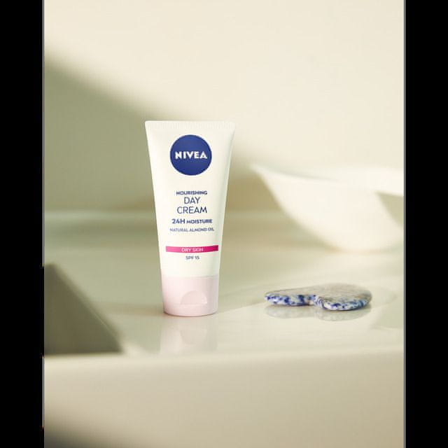 Negovalna dnevna krema, obogatena z naravnim mandljevim oljem in vlažilnim kompleksom Moisture Care. Ta krema kožo zmehča, neguje in vlaži do 24 ur. Idealna je za vsakodnevno nego suhe in občutljive kože, saj jo naredi mehko, voljno in zaščiteno pred izsušitvijo.