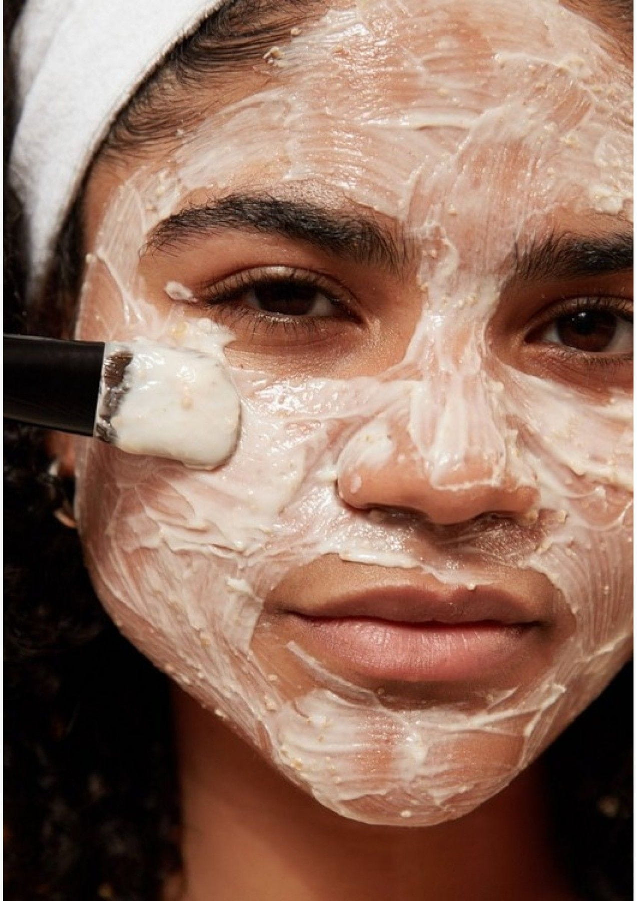 S čopičem za masko ali prsti nanesite enakomerno plast maske na obraz, izogibajte se okolici oči in ustnic. Po želji nanesite na vrat in dekolte.