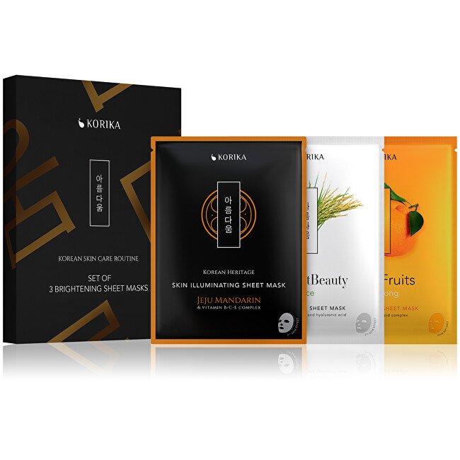 Brightening Sheet Mask FermentBeauty Rice (Brightening Sheet Mask) 1 × 20 g Superfruits Hallabong Brightening Sheet Mask (blažilna maska) 1 × 25 g Korean Heritage Brightening Sheet Mask (osvetljujoča maska za kožo) 1 × 25 g
