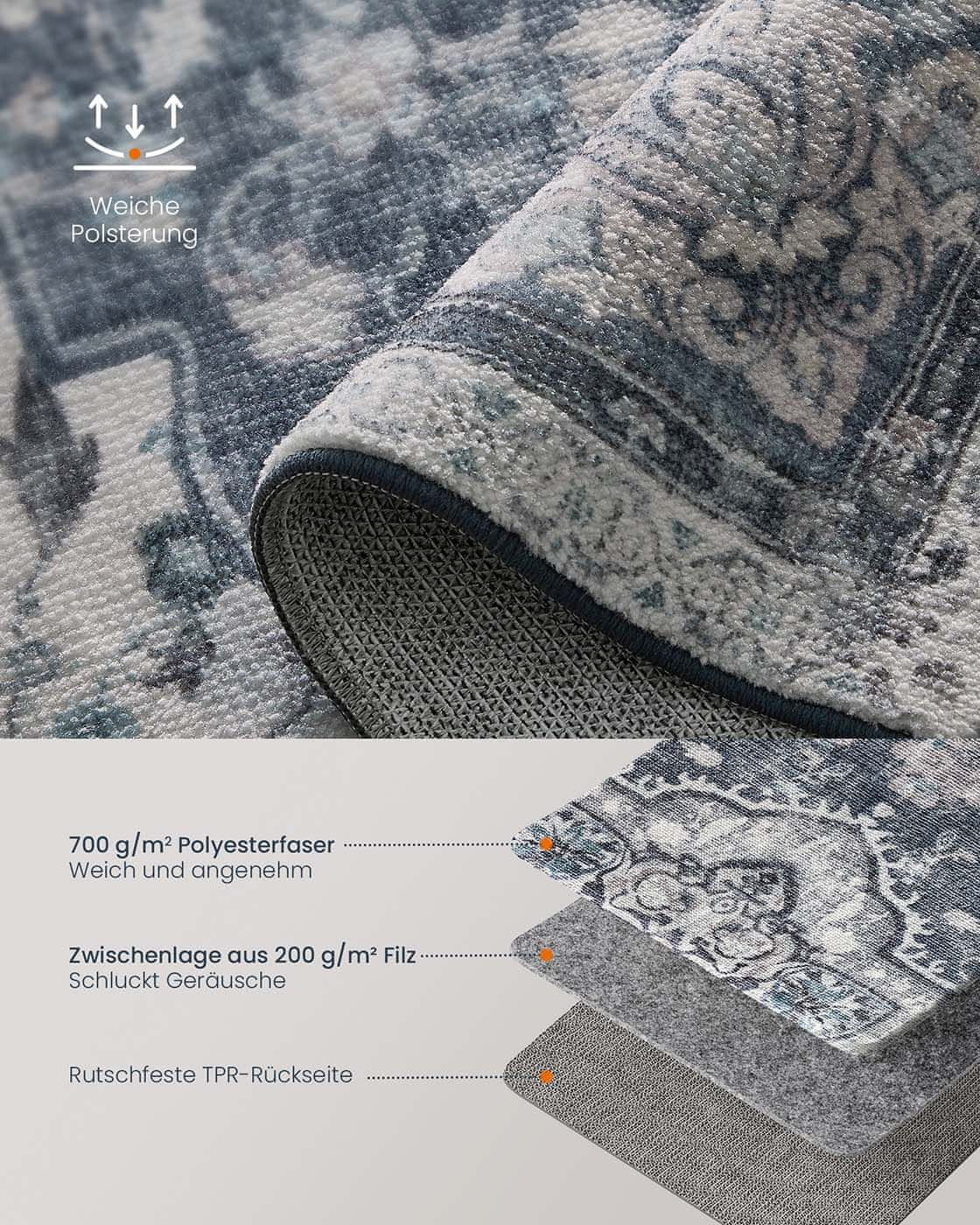 Ta preproga v vintage slogu je zasnovana tako da doda pridih elegance in udobja vsakemu bivalnemu prostoru. Idealna za dnevne sobe spalnice kuhinje hodnike ali jedilnice ima pralno in nedrsečo konstrukcijo za praktično vsakodnevno uporabo. Preproga združuje mehke materiale s stilskim videzom kar jo naredi vsestranski dodatek k vaši domači dekoraciji.
