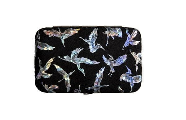 6-delni set za manikuro v čudovitem črnem semišu, okrašenem s srebrnimi pticami. Zaradi kompaktne oblike etuija lahko manikuro vzamete s seboj kamor koli.