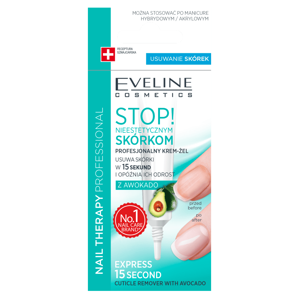Specializiran pripravek, ki temelji na edinstveni formuli Form-e, hitro, enostavno in učinkovito odstrani suho, odebeljeno in zaraščeno obnohtno kožico okoli nohtov, brez tveganja poškodb. Preprečuje luščenje, razpokanje, draženje in nabiranje obnohtne kožice na nohtni plošči. Vsebuje avokadovo olje, bogato z vitamini A, B5, D in E, ki intenzivno neguje, gladi in globinsko vlaži občutljivo kožo okoli nohtov.