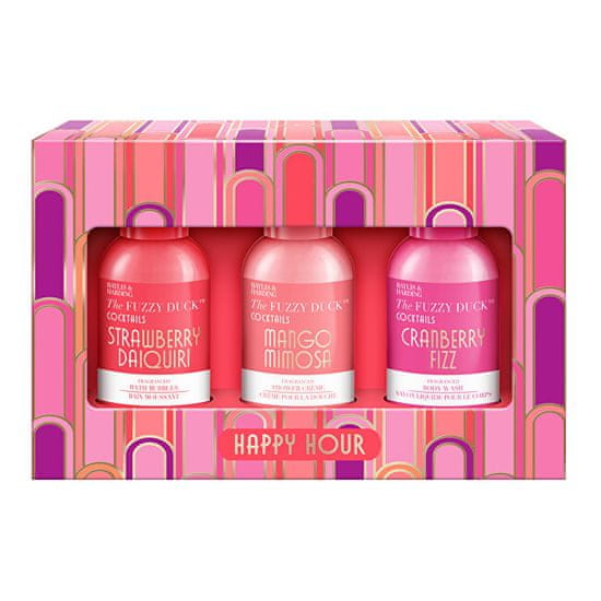 Darilni set Cotswold Cocktails je popolna izbira za ljubitelje kopalne prijetnosti in sadnih vonjav. Vsebuje tri dišeče izdelke v priročnem 100-mililitrskem pakiranju: peno za kopel Strawberry Daiquiri, kremo za prhanje Mango Mimosa in gel za prhanje Cranberry Fizz. Vsak izdelek je navdihnjen z osvežilnim koktajlom in v kopalnico prinaša pridih igrivosti in sproščenosti. Zaradi elegantne embalaže je to popolno darilo za vsako priložnost.