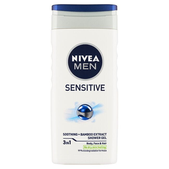 Set vsebuje: gel za prhanje za moške Sensitive 250 ml Men Cleansing Face Wash 100 ml Zaščitna krema za kožo SPF 15 Men Sensitive (krema za obraz) 75 ml Celoten opis