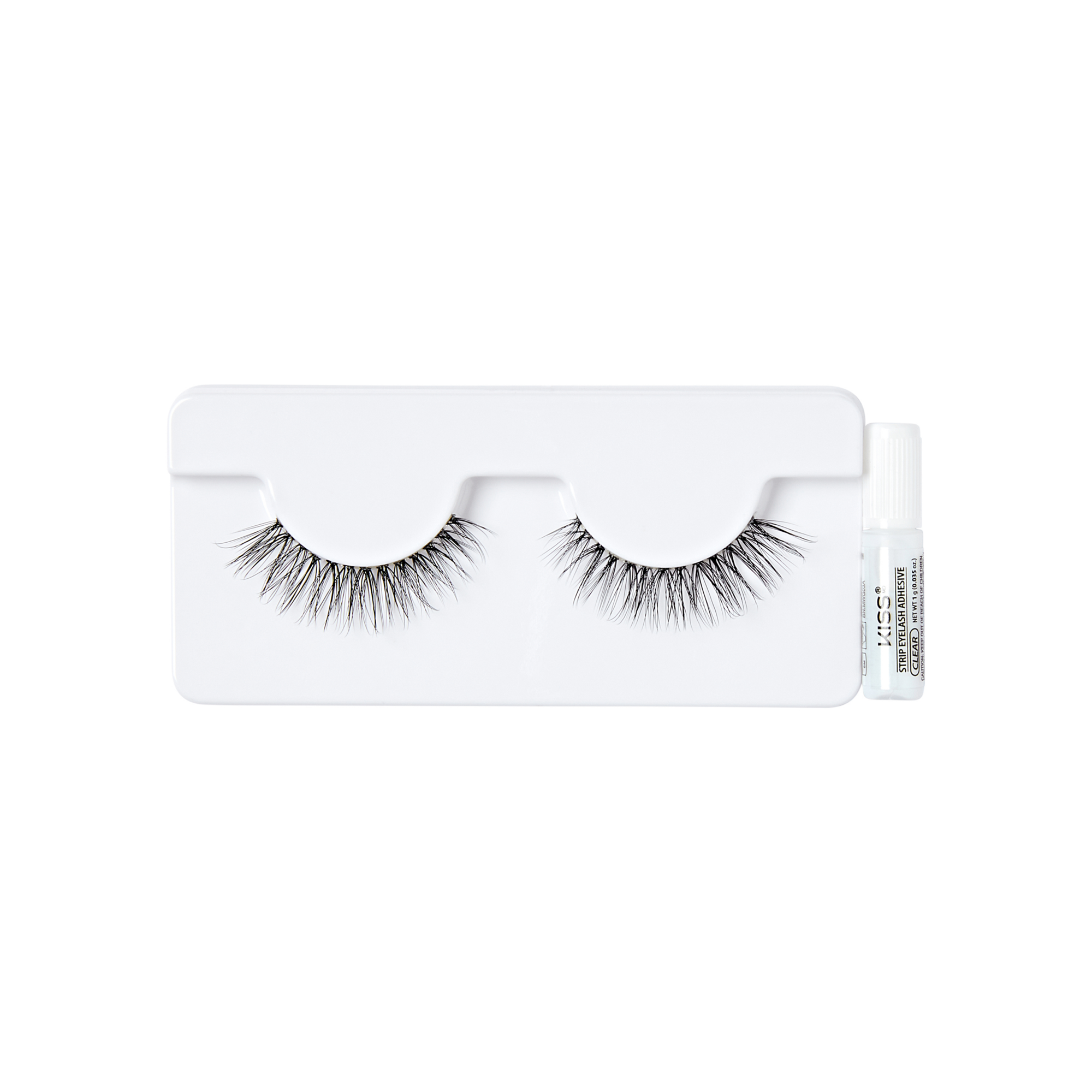 Preverite prileganje, po potrebi obrežite. Na trepalnice nanesite lepilo Kiss, počakajte 30 sekund in nato pritrdite trepalnice na naravno linijo trepalnic.