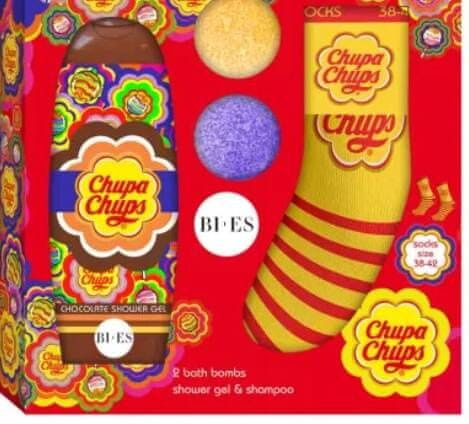 Odkrijte užitek kopanja z BIES Chupa Chups , edinstvenim kopalniškim kompletom, ki bo vsaki kopalnici dodal barvo in zabavo. Ta komplet je skrbno ustvarilo podjetje Uroda Polska Sp z o. o. iz Varšave, da bi zagotovilo sprostitev in počitek ter dodalo kanček sladkosti vaši vsakodnevni rutini nege.