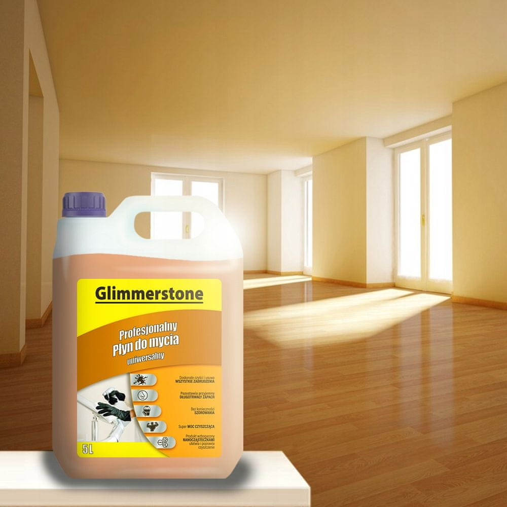 Univerzalna tekočina za pranje 5L učinkovita? Univerzalna tekočina se uporablja za čiščenje vseh pralnih površin v gospodinjstvu, ne da bi pri tem poškodovala njihovo strukturo. Glimmerstone Professional univerzalna tekočina – izdelek, namenjen čiščenju različnih površin, vključno s ploščicami, talnimi ploščami, PVC-jem, kamnom, stopnicami, ograjami, stenami, lesom in mnogimi drugimi. Koncentrirana formula, obogatena z aktivnimi čistilnimi sestavinami, se odlično spopade z vsemi vrstami madežev in umazanije, zaradi česar je postopek čiščenja hiter in enostaven. ? PREDNOSTI: odlično očisti in odstrani vso umazanijo, pušča prijeten, dolgotrajen vonj, drgnjenje ni potrebno, super čistilna moč, izdelek obogaten z nanodelci, olajša in izboljša čiščenje. KOMPLET VSEBUJE: Univerzalno pralno sredstvo Prostornina: 5 l Znamka: Glimmerstone KAT13570 UNIVERZALNA UPORABA? Izdelek, namenjen čiščenju različnih površin. Koncentrirana formula, obogatena z aktivnimi čistilnimi sestavinami, se odlično spopade z vsemi vrstami madežev in umazanije, zaradi česar je postopek čiščenja hiter in enostaven. ? Lahko se uporablja za: Čiščenje tal. Pranje pohištva. Pranje ploščic, keramike. Pomivanje posode. Čiščenje kopalnic. ? Sredstvo se lahko uspešno uporablja za čiščenje vseh pralnih talnih in nadtalnih površin. TAKOJŠNJE DELOVANJE Izdelek ima edinstveno formulo z eteričnimi olji, ki hitro odstrani umazanijo. Ne zahteva drgnjenja in deluje takoj. Površine pusti čiste in sijoče. Tekočina je zelo učinkovita in enostavna za uporabo. ? KAKO UPORABLJATI? Velike površine operite z razredčeno tekočino, pri čemer uporabite 2 pokrovčka tekočine na 5 litrov vode. ? Trdovratne madeže sperite z nerazredčeno tekočino. ? Nato obrišite z vlažno gobo ali krpo. KOMPLET VKLJUČUJE: Univerzalno pralno sredstvo Prostornina: 5 l Znamka: Glimmerstone KAT13570