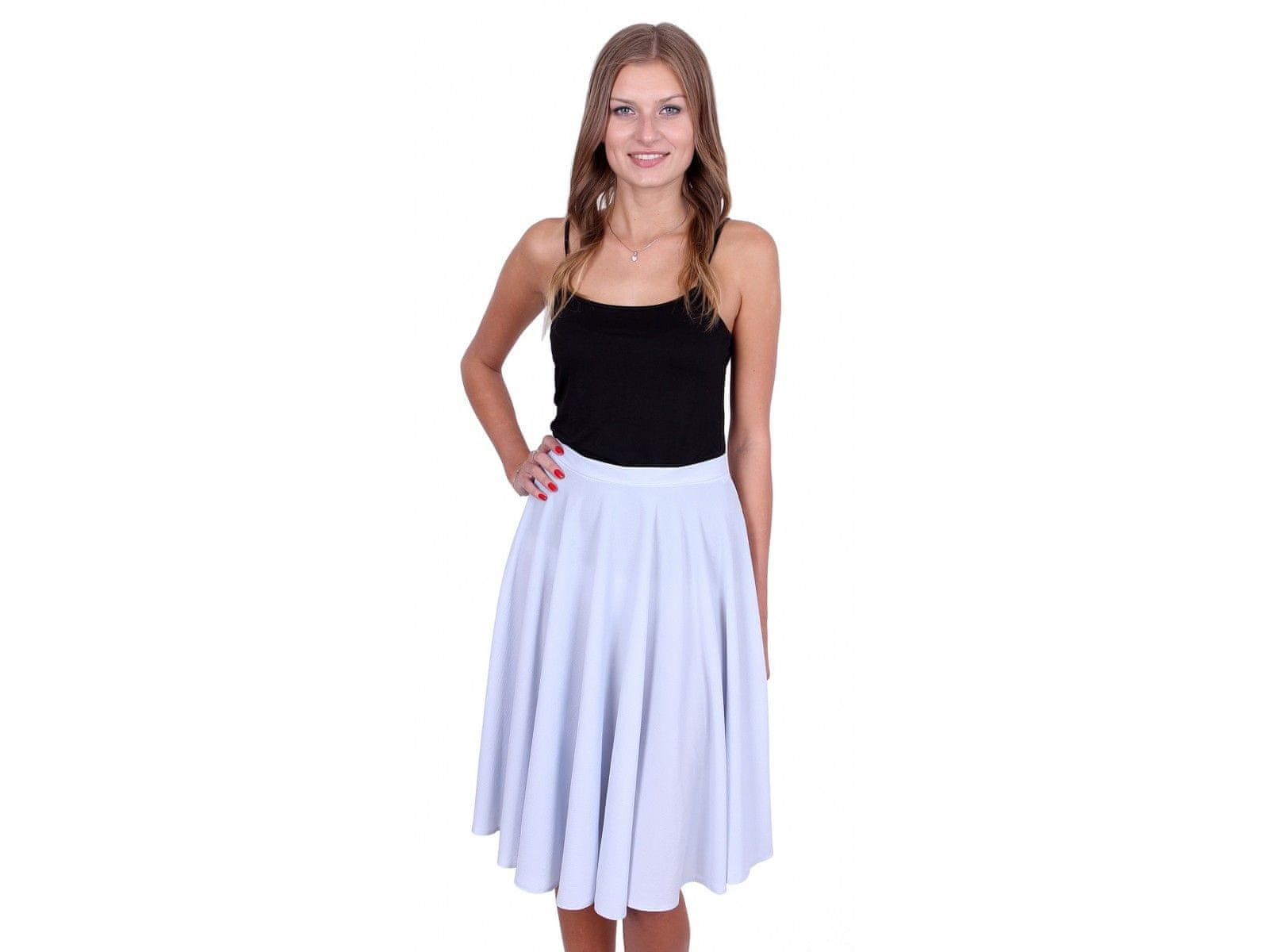 Razširjeno midi krilo.Izdelano v elegantnem slogu.Narejeno iz mehke, prijetne tkanine na dotik.Zapenjanje na zadrgo.Udobno in zelo ženstveno.Celotna dolžina velikosti 36 in 38 – 67 cm Celotna dolžina velikosti 40, 42 in 44 – 69 cm Velikosti oblačil so standardne. Celoten opis