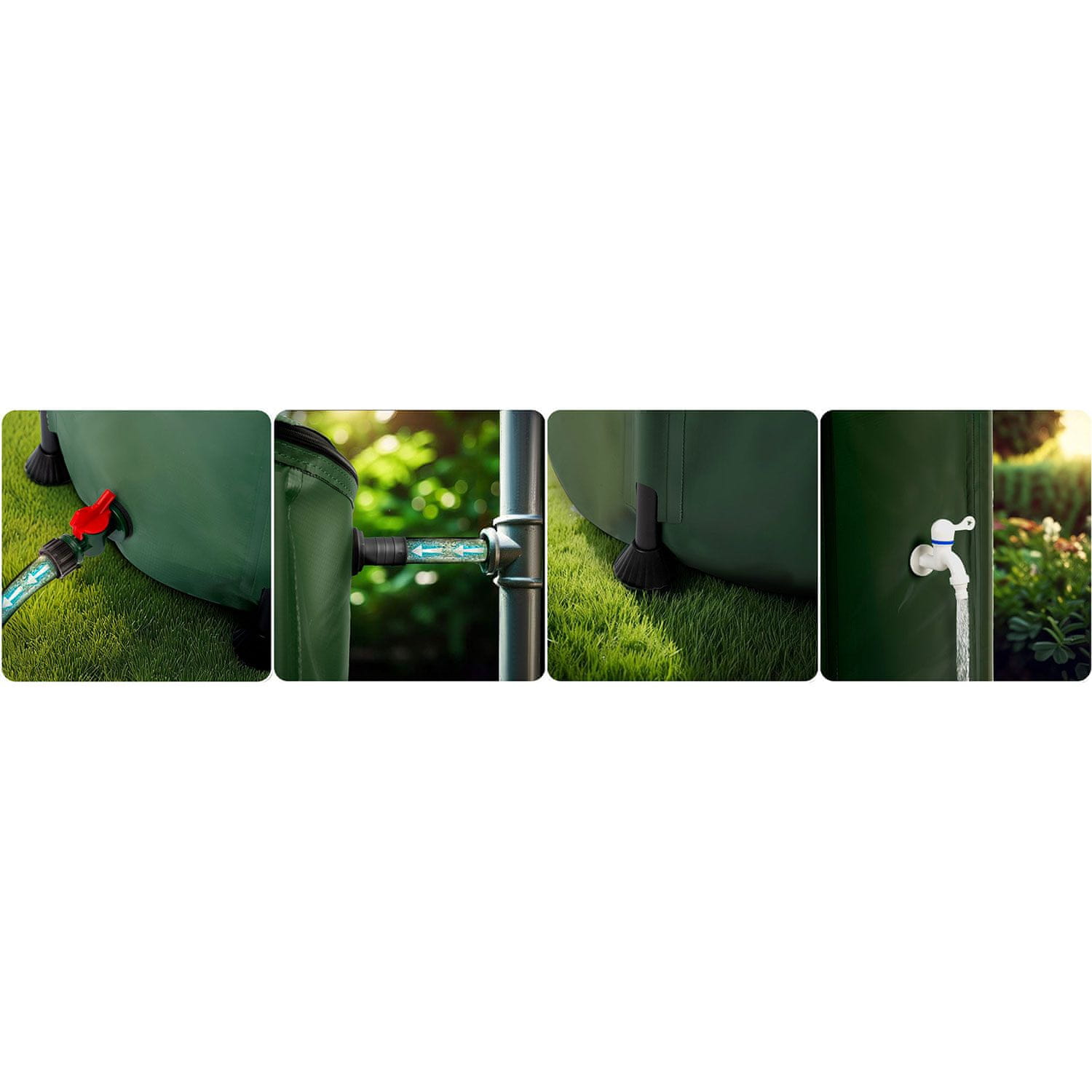 Vrtno cev lahko preprosto priključite na rezervoar, kar vam omogoča priročno zalivanje gredic, trate ali rastlin v rastlinjaku. Tako je deževnica enostavno dostopna po vsem vrtu, kar vam prihrani čas in trud.