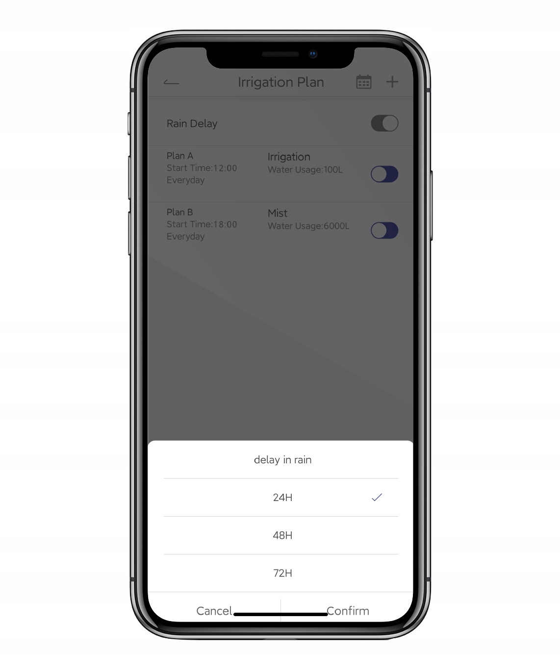 - Krmilnik namakanja: Omogoča vam upravljanje namakalnega sistema z zaslonom, kjer lahko preverite načrt namakanja.
