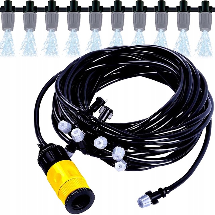- NIČELNA PORABA ENERGIJE: Preprosto priključite kabel na vodo iz pipe, sistem za megleno hlajenje bo samodejno pršil in hladil, ne bo porabljal elektrike, prihranil denar in bo okolju prijazen.