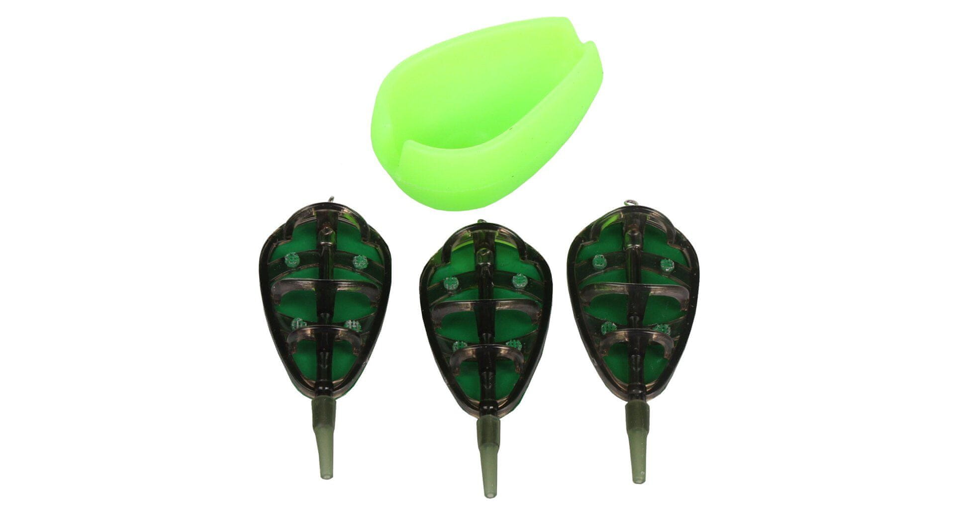 Komplet Merco Bait Feeder Set je idealen pripomoček za vse ribiče, ki se želijo osredotočiti na tehniko ribolova s krmilnikom. Ta komplet vključuje natančno oblikovano krmilnico in kalup, ki skupaj omogočata popolno namestitev vabe in vab za največjo privlačnost za ribe. Aerodinamična oblika zagotavlja dolge in natančne mete tudi v neugodnih razmerah. Krmilo je izdelano iz trpežnega materiala, ki zagotavlja dolgo življenjsko dobo. Zagotavlja čvrst oprijem mešanice, ki se postopoma sprošča v vodo in privablja ribe. Odličen za ribolov krapov, amurjev in drugih rib s tehniko method feeder. – komplet: feeder 30 g / 40 g / 50 g – material: silikonska kovina – velikost feederja: 85 × 3 cm