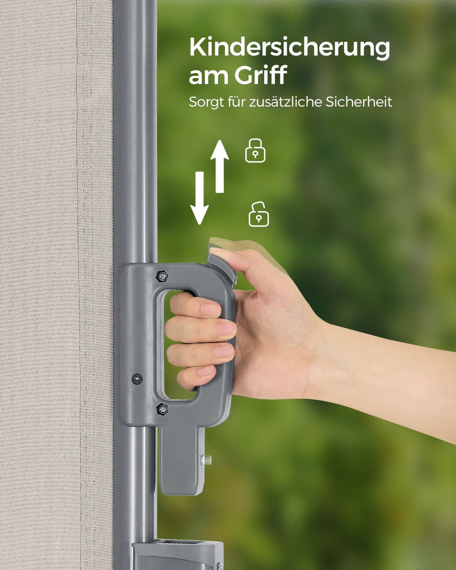 Ta nastavljiv stranski nadstrešek zagotavlja učinkovito zasebnost in zaščito pred soncem za vaš balkon teraso ali vrt. Ustvari udobno zunanjo ali notranjo okolje saj vas ščiti pred vetrom in nezaželenimi pogledi zaradi česar je idealen za sprostitev ali uživanje ob obrokih na prostem. Nadstrešek je enostaven za namestitev in uporabo ter ga je mogoče hitro pospraviti ko ni v uporabi.