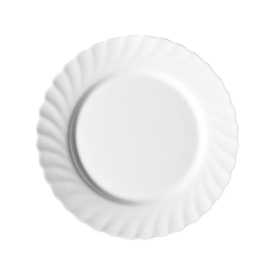 Plitki krožnik iz belega opalnega stekla, premera 27cm, pakirani po 8kos v paket.