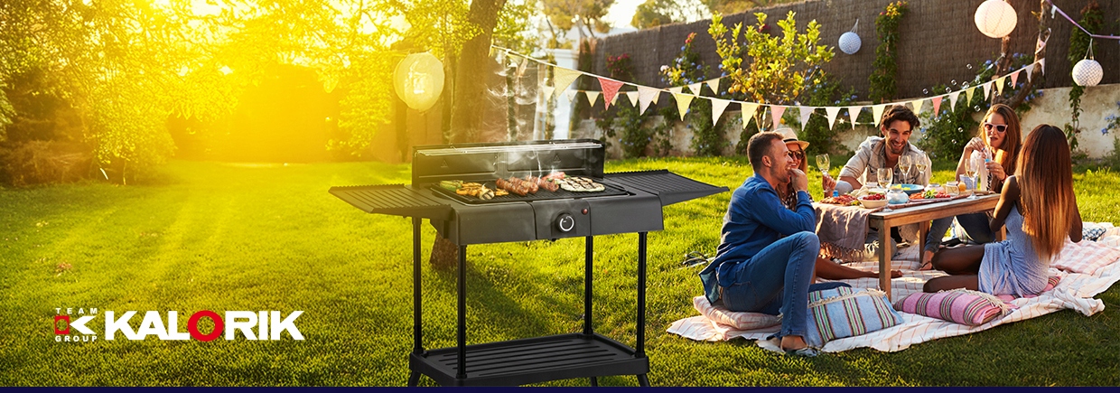 Sanjate o popolnoma pripravljenih obrokih vse leto? Večnamenski žar Kalorik 6 v 1 je rešitev za vas! Poslovite se od ostrega dima, napornega prižiganja in potrebe po iskanju drv. Zahvaljujoč električnemu pogonu lahko pečete na žaru kjer koli želite – doma, na balkonu, na vrtu!