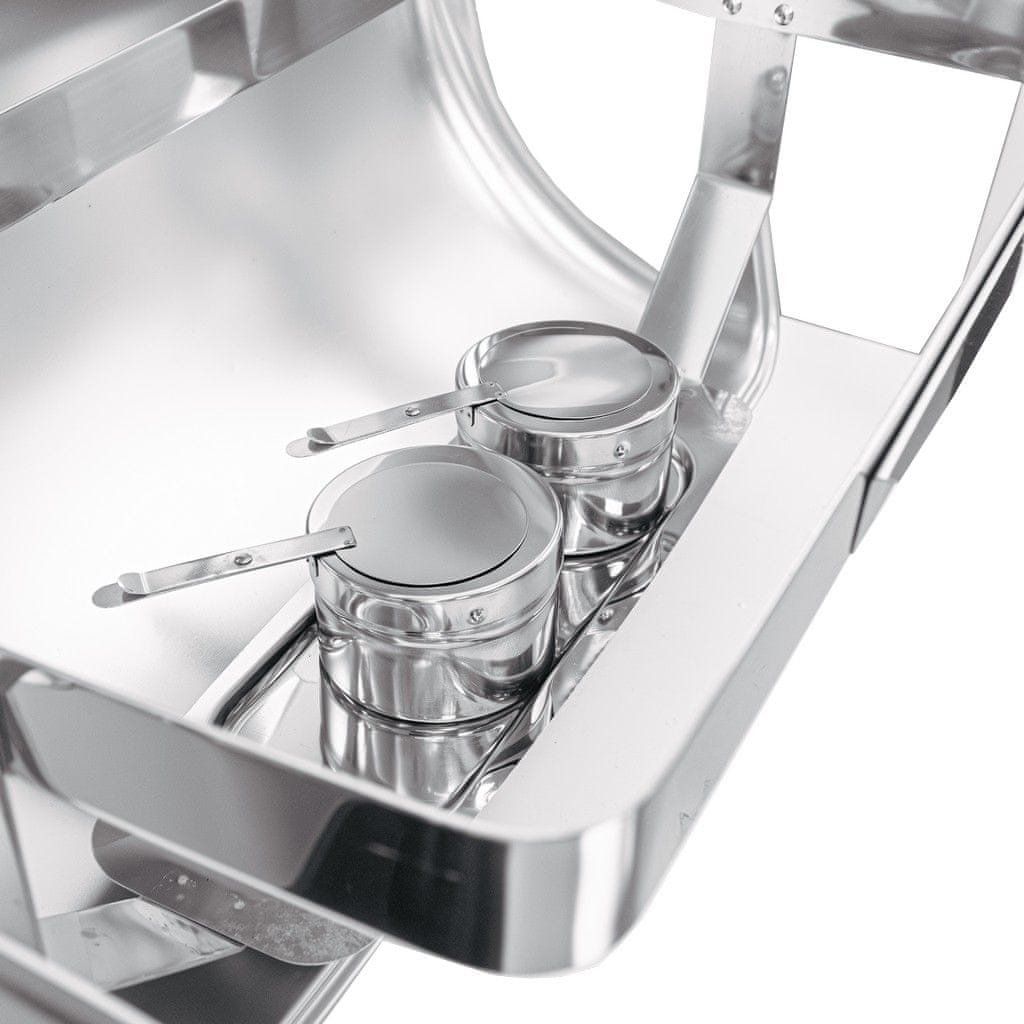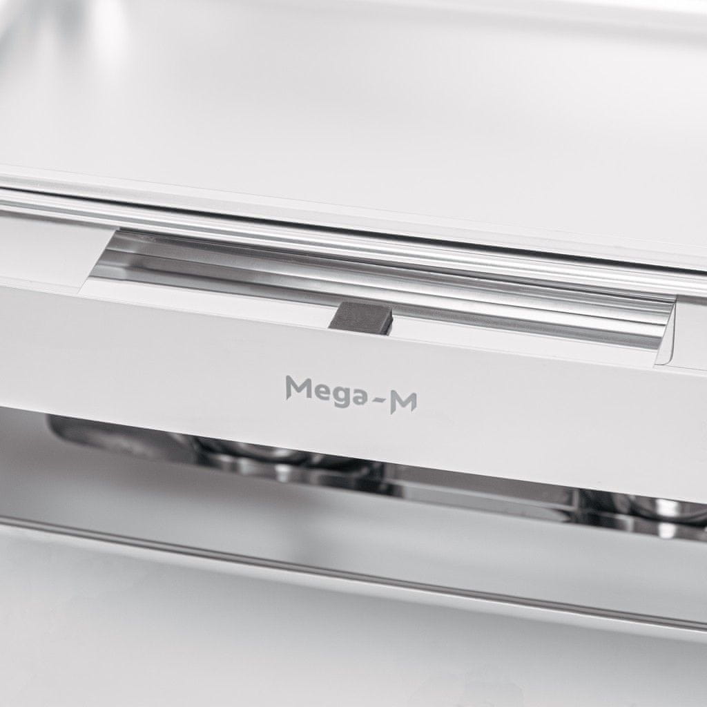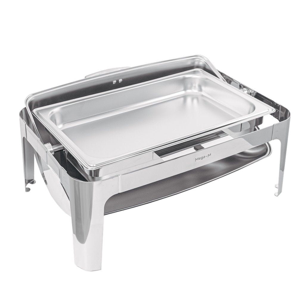 Namizni grelnik Mega-M z oknom za ogled se uporablja za vzdrževanje ustrezne temperature in serviranje že pripravljenih jedi. Omogoča samopostrežbo gostov na vseh vrstah bifejev, izobraževanj ali konferenc. Izdelan je iz visokokakovostnega nerjavečega jekla , zaradi česar ga je enostavno čistiti. Grelnik za catering ima priročen sistem za ogrevanje goriva , ki dolgo časa vzdržuje ustrezno temperaturo