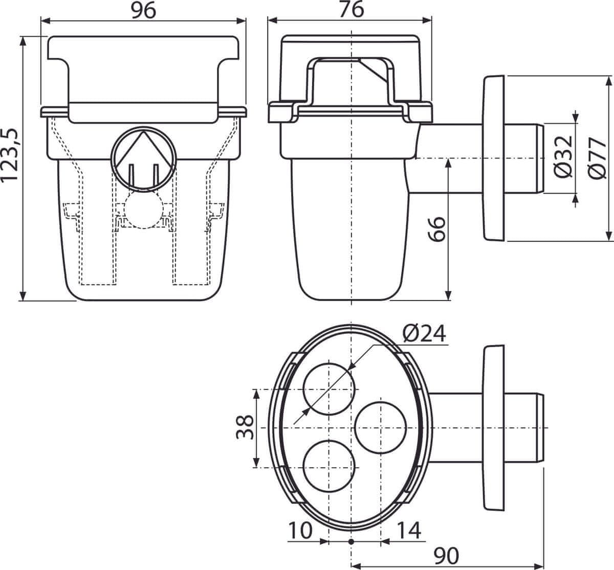 Dimenzije SIFONA 0,1 × 0,1 × 0,15 m. Teža izdelka je 0,16 kg.