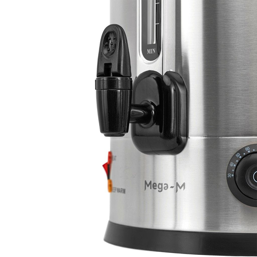Mega-M bojler z impresivno prostornino 24,5 l je naprava, zasnovana z mislijo na najzahtevnejše uporabnike. Zahvaljujoč kompaktni, a prostorni zasnovi (višina 34 cm, premer 31 cm) in moči 2800 W bojler zagotavlja hitro segrevanje velikih količin vode brez kompromisov glede učinkovitosti in ergonomije. Ohišje iz visokokakovostnega nerjavečega jekla zagotavlja vzdržljivost, estetiko in enostavno čiščenje – tudi v močno uporabljenih prostorih.