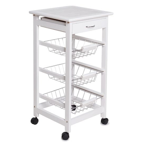 KONDELA Servirna miza na kolesih Korus - bela