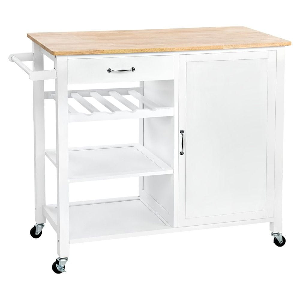 KONDELA Servirna mizica na kolesih Robins - bela / naravna