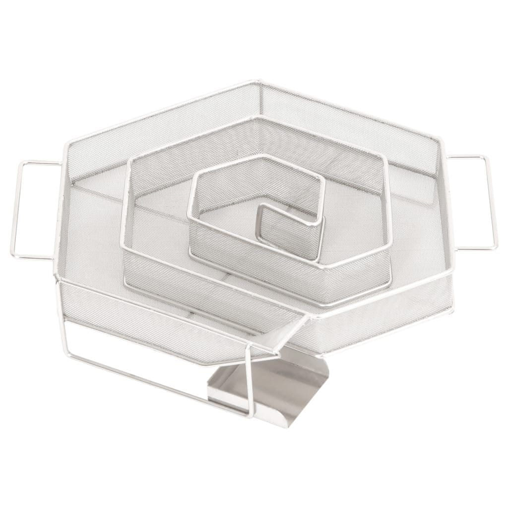• Generator hladnega dima: Preprosto napolnite z žagovino in prižgite s čajno svečko, dokler žagovina ne začne spreminjati barve. Odstranite čajno lučko in generator dima postavite v predel za dimljenje. Kompaktna mreža v obliki šesterokotnika omogoča enakomerno in počasno gorenje dimnih sekancev do 7 ur.