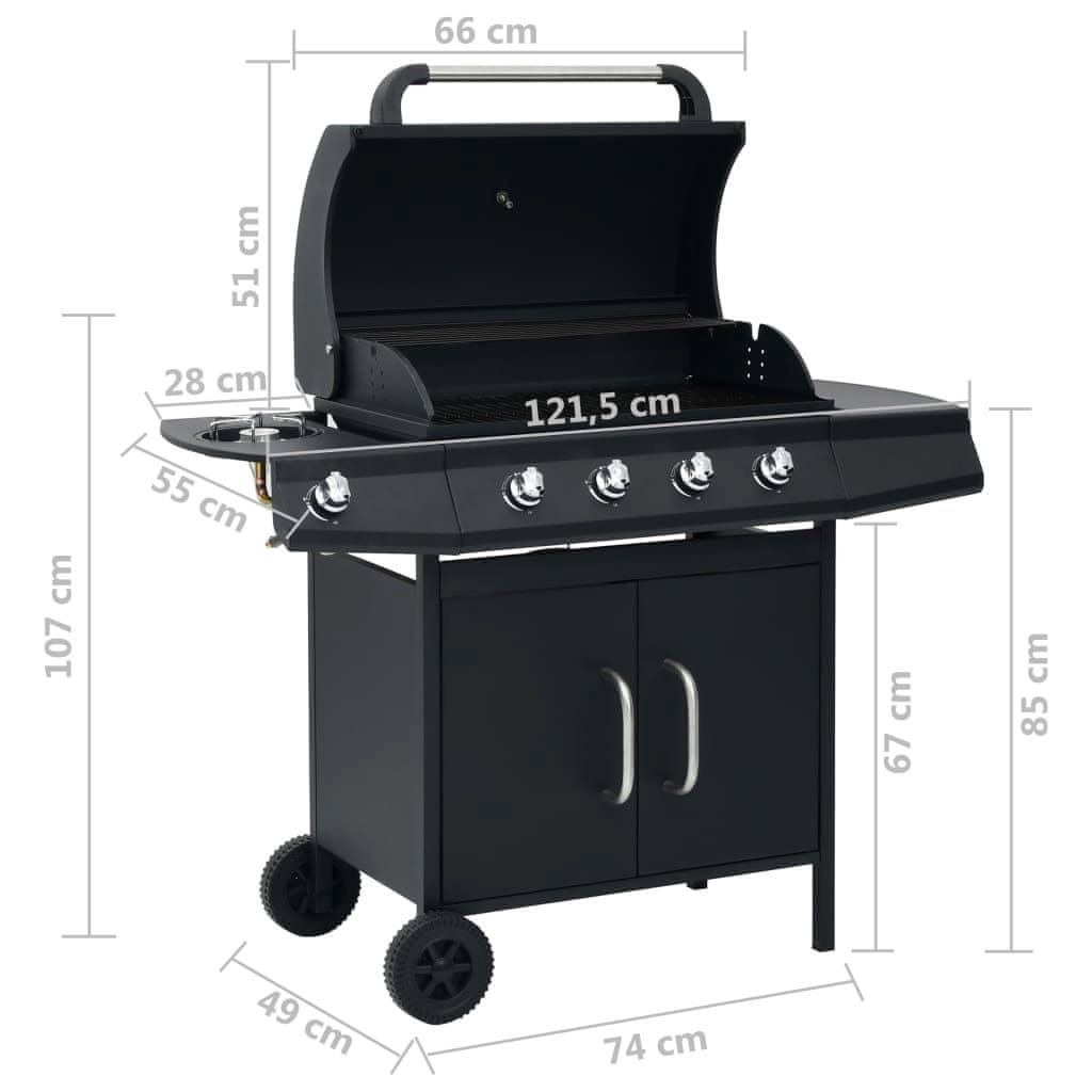 Vidaxl Plinski žar 4+1 kuhalne cone črn jeklen