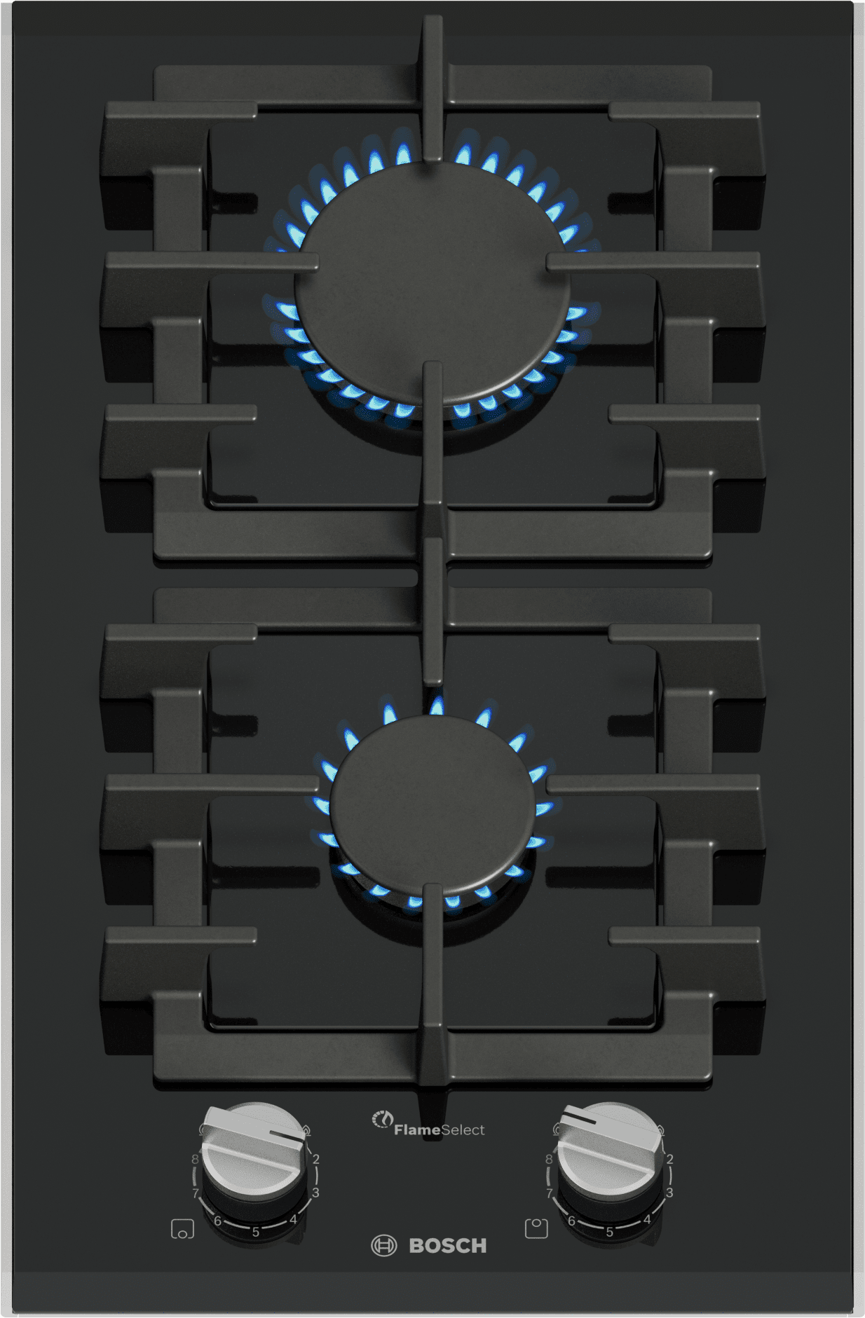 Bosch Serie 8, Domino plinska kuhalna plošča, 30 cm, na steklokeramiki, črna (PRB3A6I40)