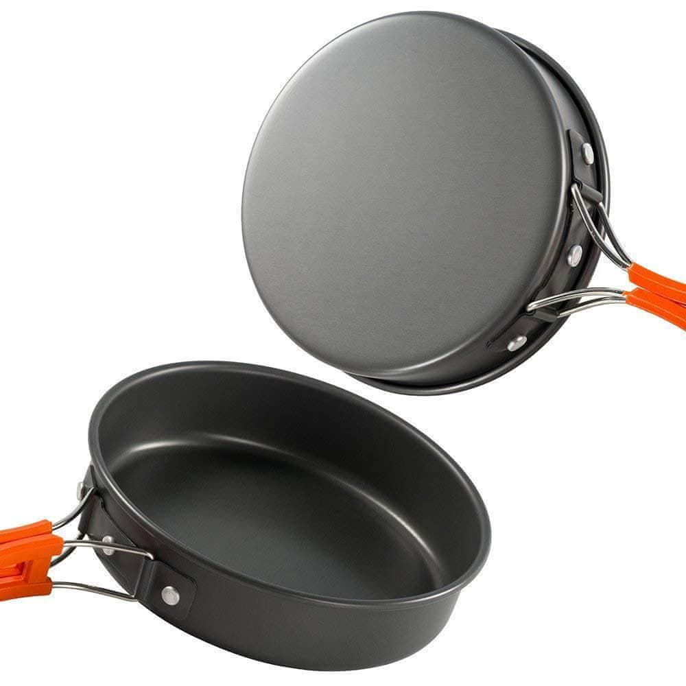 Popoln in kompakten štedilnik za kampiranje, ki ga lahko vzamete s seboj na kampiranje ali imate doma. Paket vsebuje ponev, ponev, ponev za kavo, plinski gorilnik, dve skodelici, komplet jedilnega pribora in karabin. Peč za kampiranje ima tudi pripadajočo torbo za shranjevanje, kar pomeni, da zavzame minimalno prostora v nahrbtniku. Skupaj tehta cca. 600 g. Ponve imajo obdelano površino proti prijemanju, ki olajša pomivanje. Plinski gorilnik lahko preprosto privijete na plinsko posodo (ni priložena).