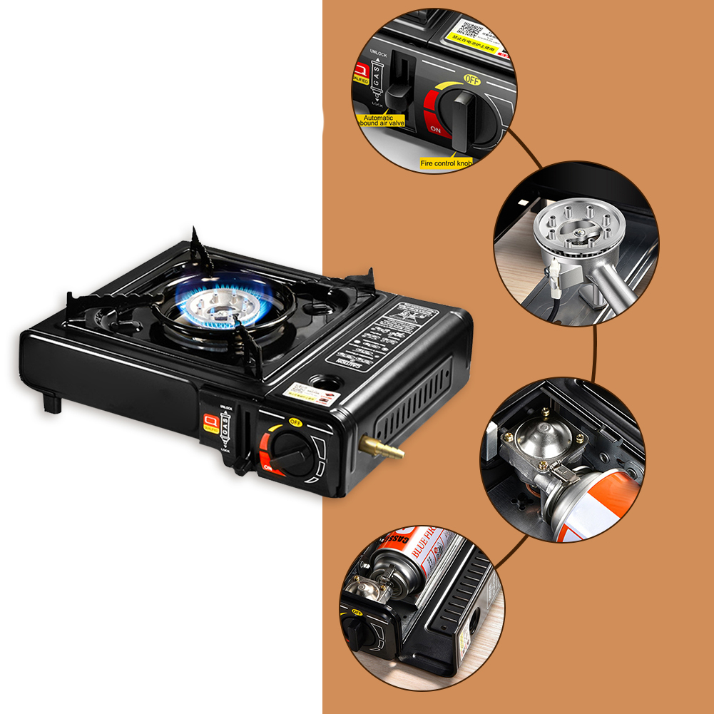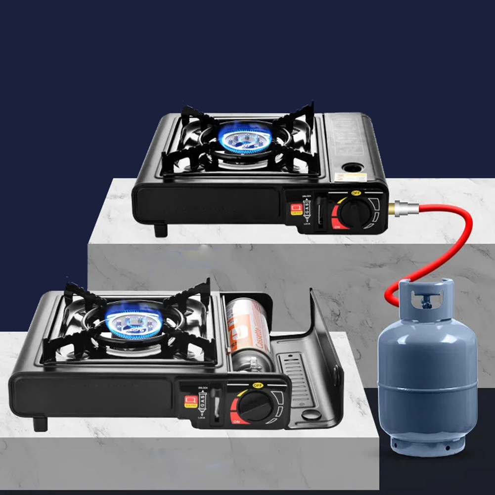 Zahvaljujoč vložku z avtomatskim ventilom lahko štedilnik za kampiranje 2 v 1 varno prevažate v kovčku, plinski vložek pa lahko večkrat odklopite in ponovno priklopite.