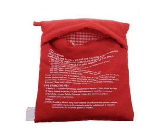 Super pripomoček, ki skuha krompir v 4 minutah! Krompir samo položite v „vrečko za kuhanje“, ga za približno 4 minute postavite v mikrovalovno pečico in je kuhan! Primeren je tudi za različne vrste zelenjave – korenje, peso, koruzo itd.