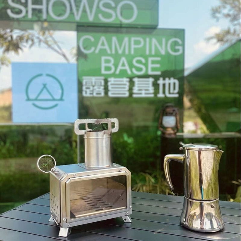 Kompaktni kamping štedilnik na drva iz nerjavečega jekla