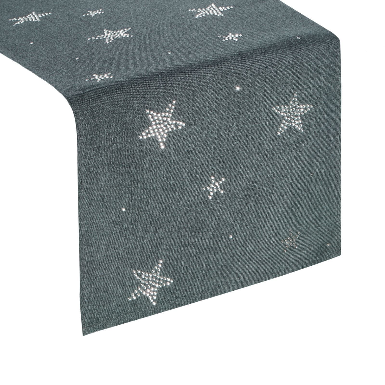 Božični namizni prtljažnik iz gladke tkanine, okrašen s svetlečimi cirkoni. Izdelano iz visokokakovostnih materialov. Širina: 33 cm, dolžina: 140 cm, barva: grafitna, sestava: 100 % poliester