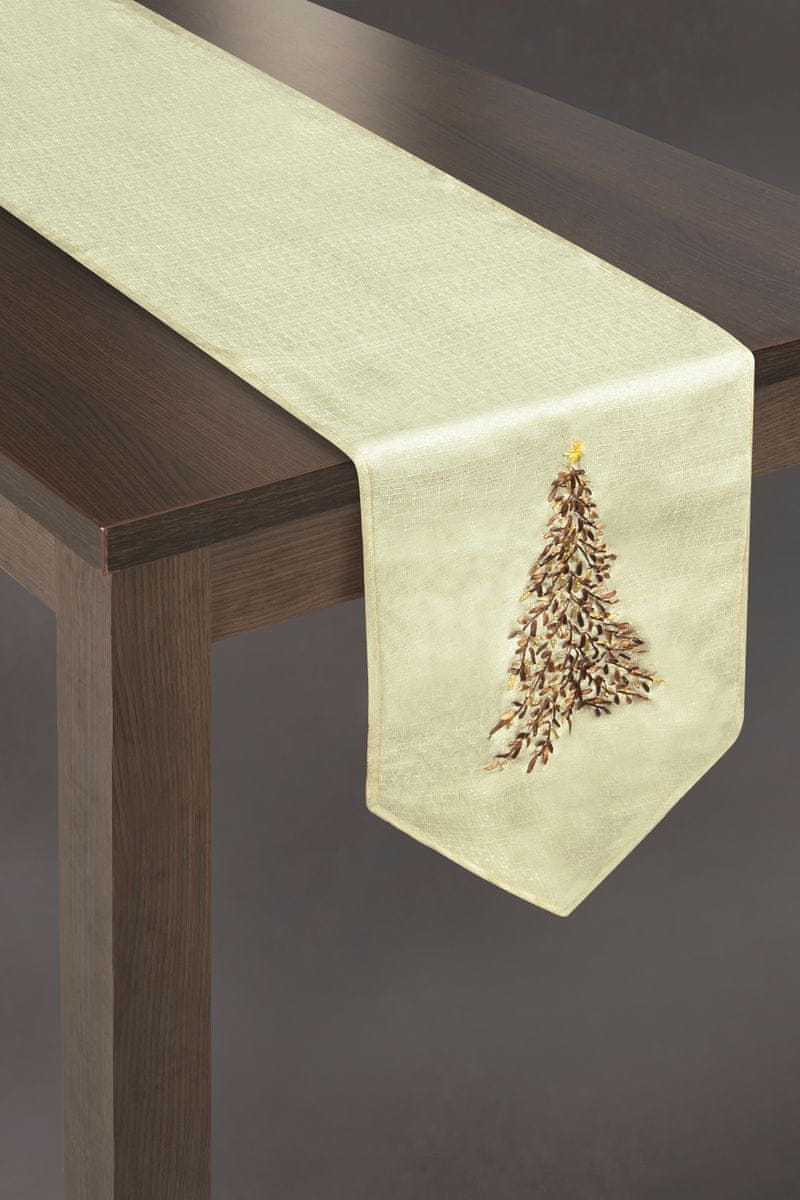 Božični namizni tekač iz gladke tkanine. Krajši robovi so okrašeni z izrazito aplikacijo. širina: 33 cm, dolžina: 140 cm, barva: krem, sestava: 100 % poliester