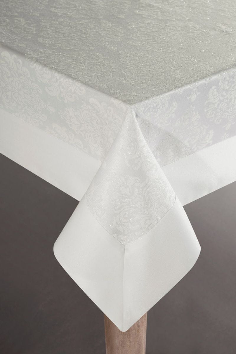 Ekskluzivni namizni prt z odprtino širina: 150 cm, dolžina: 220 cm, barva: bela, sestava: 55 % poliester, 45 % bombaž Celoten opis