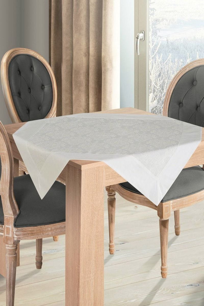 Ekskluzivni namizni prt z odprtino širina: 85 cm, dolžina: 85 cm, barva: bela, sestava: 55 % poliester, 45 % bombaž