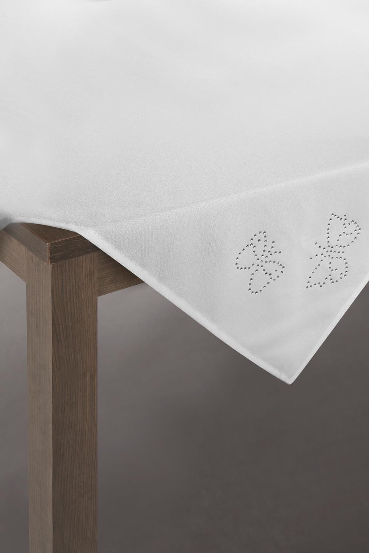 Eleganten namizni prt iz gladke tkanine, lepo okrašen z metulji iz cirkonov. Izdelano iz visokokakovostnih materialov. Širina: 85 cm, dolžina: 85 cm, barva: bela/srebrna, sestava: 100 % poliester