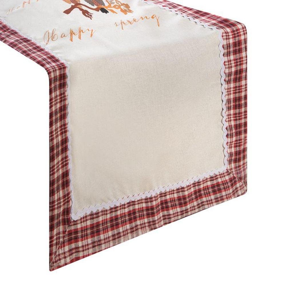 Eleganten tekač, okrašen s kvačkano odprtino in občutljivim trakom. Širina: 45 cm, dolžina: 150 cm, barva: naravna/rdeča, sestava: 100 % poliester Celoten opis