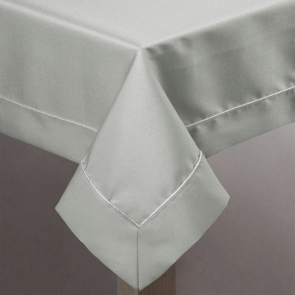 Namizni prt z nežnim srebrnim robom, pakiran v elegantni škatli širina: 145 cm, dolžina: 400 cm, barva: srebrna, teža: 190 GSM, sestava: 100 % poliester: 100 % poliester