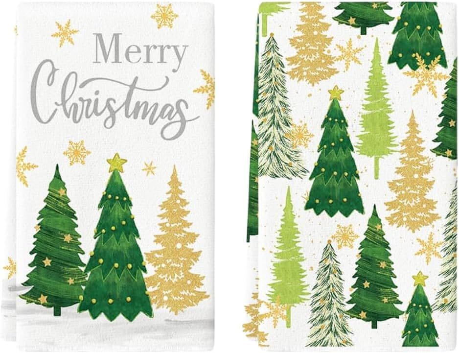 Nikcorp Komplet 2 božičnih kuhinjskih krp z motivom drevesa, dekorativne pralne krpe za kuhinjo, poliester, 60x40 cm