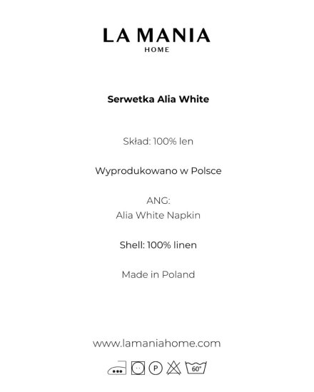 Izdelan iz visokokakovostnega lanu – naravne tkanine, cenjene zaradi izjemne vzdržljivosti, zračnosti in čudovite, prefinjene teksture. Lan se lepo obnese na mizi, je nealergen in varen tudi za zelo občutljivo kožo.
