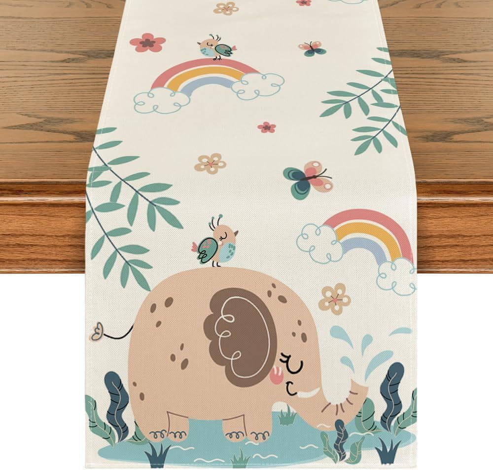 Dekorativni tekač za mizo za otroke 40×140 cm z vzorcem slona Celoten opis