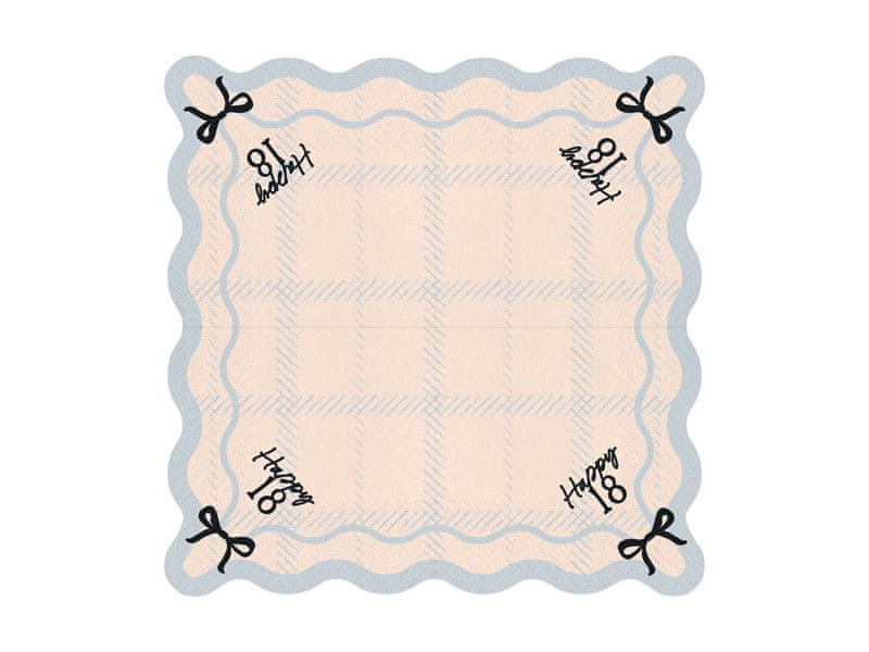 Papirnati prtički „Happy 18“ mešanica barv, dimenzije v razgrnjenem stanju približno 33 × 33 cm, dimenzije v zloženem stanju približno 16,5 × 16,5 cm.