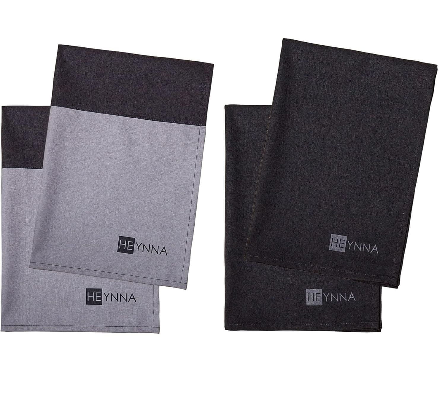 HEYNNA Komplet 4 elegantnih bombažnih kuhinjskih krp, 2× siva, 2× črna