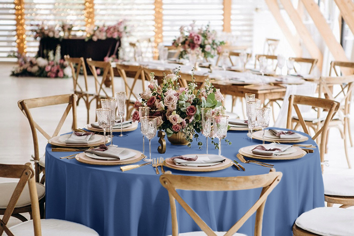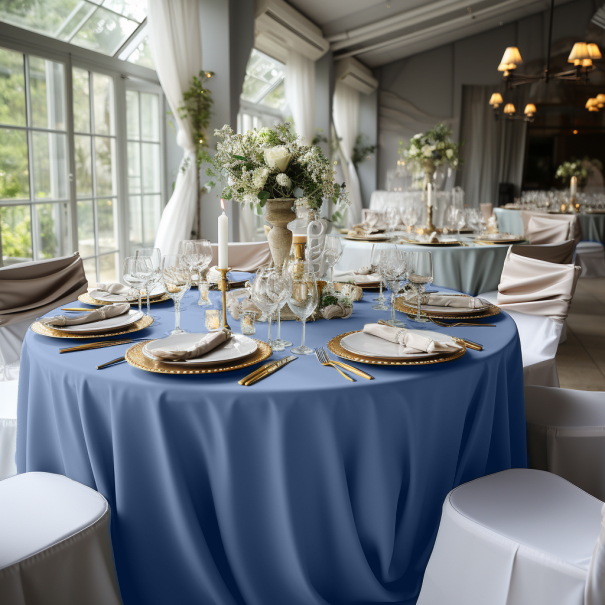 Okrogli prt, ki ga ponujamo, je **elegantna dekoracija za sprejeme, poroke in bankete.