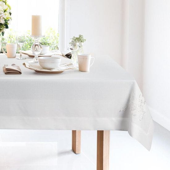 Ekskluziven okrasni prt z nežno dekoracijo širina: 140 cm, dolžina: 280 cm, barva: bela, teža: 195 GSM, sestava: 100% poliester