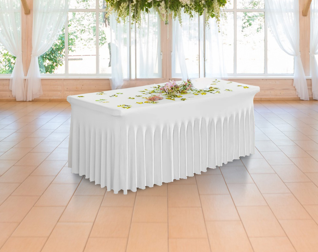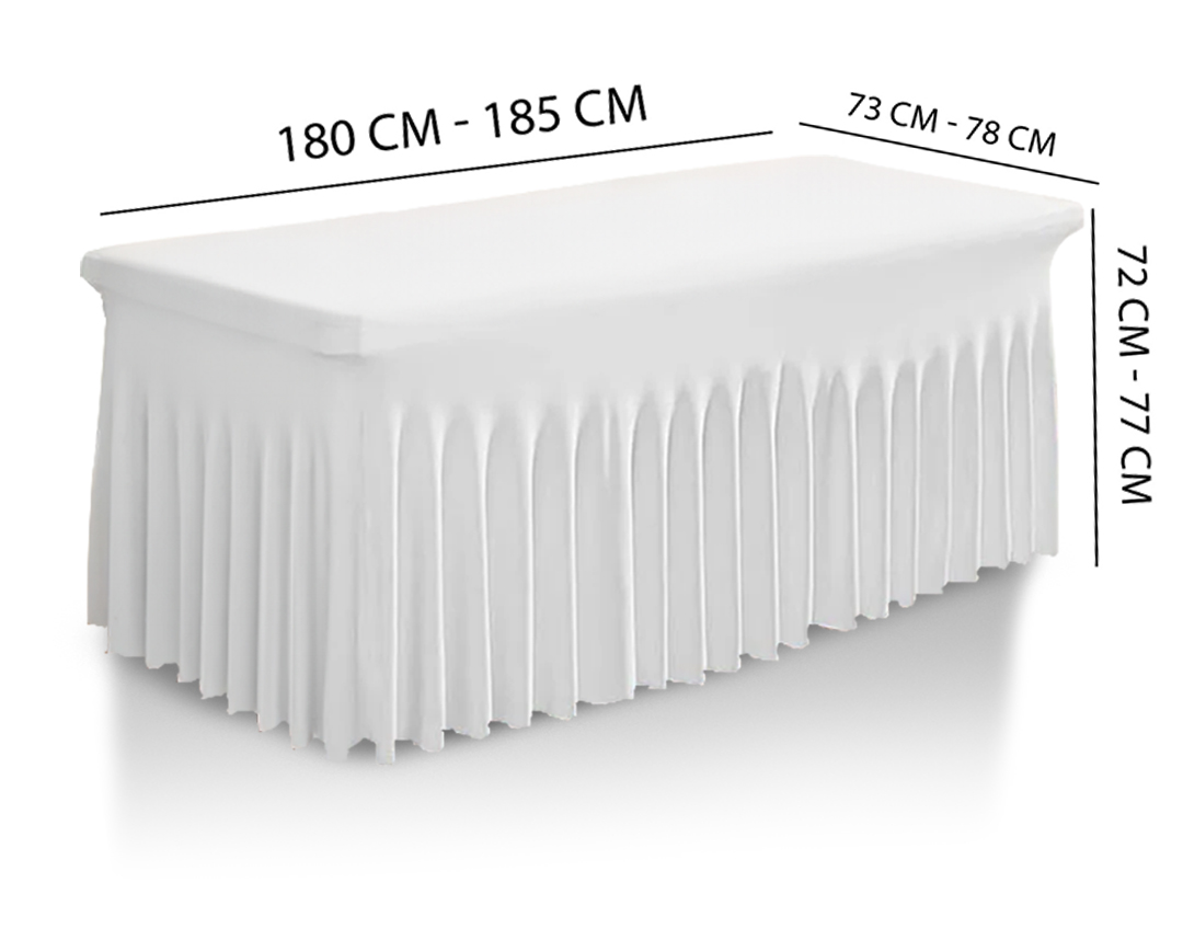 shumee PREVLEKA za banketno mizo BELA OBLIKOVNA OBLOGA z naborki 180x76 cm