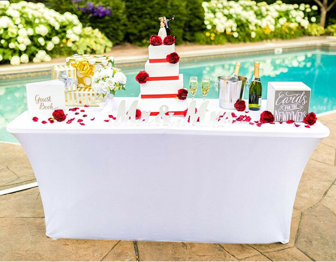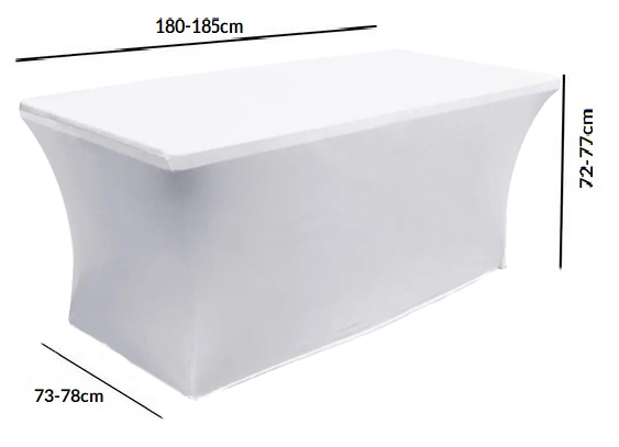 shumee PREVLEKA za catering banketno mizo 180x76 cm POLNA brez pentlje BELA